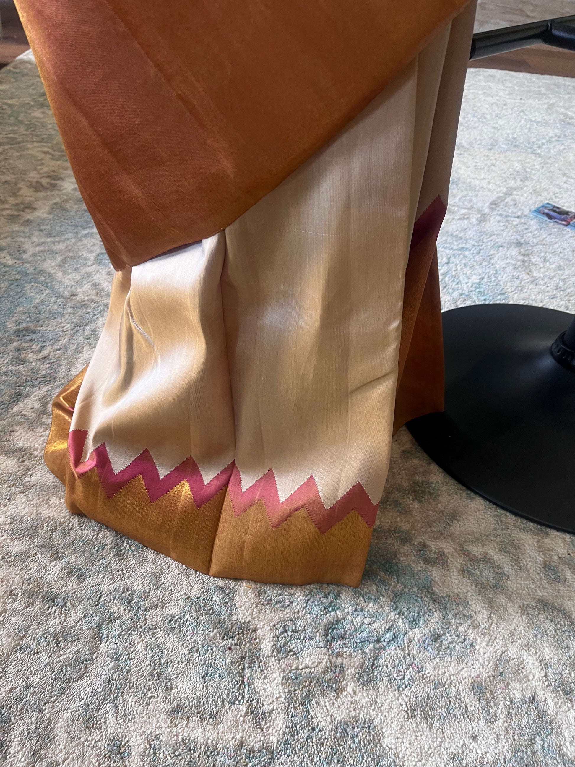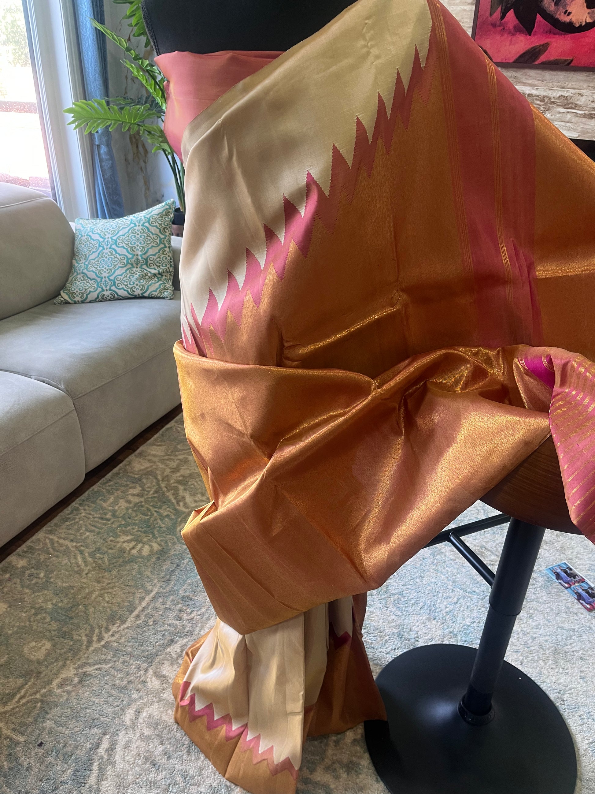 ·         Pallu: Peach-Golden Pavanchi with Intricate Zari Weaving