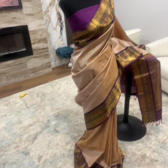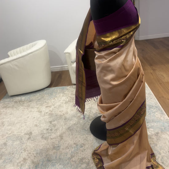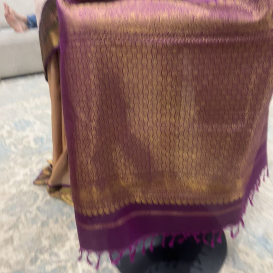 Sharada – Sandalwood and Purple Kanjeevaram Pure Silk Saree