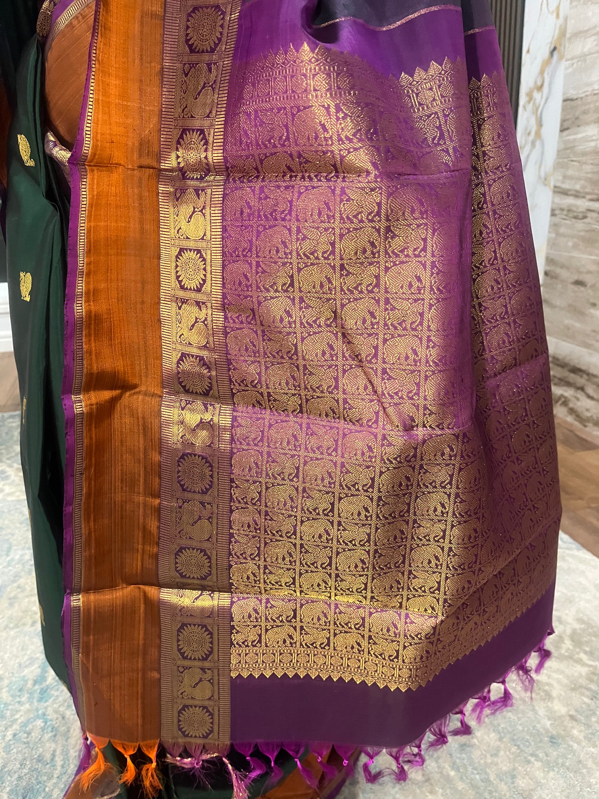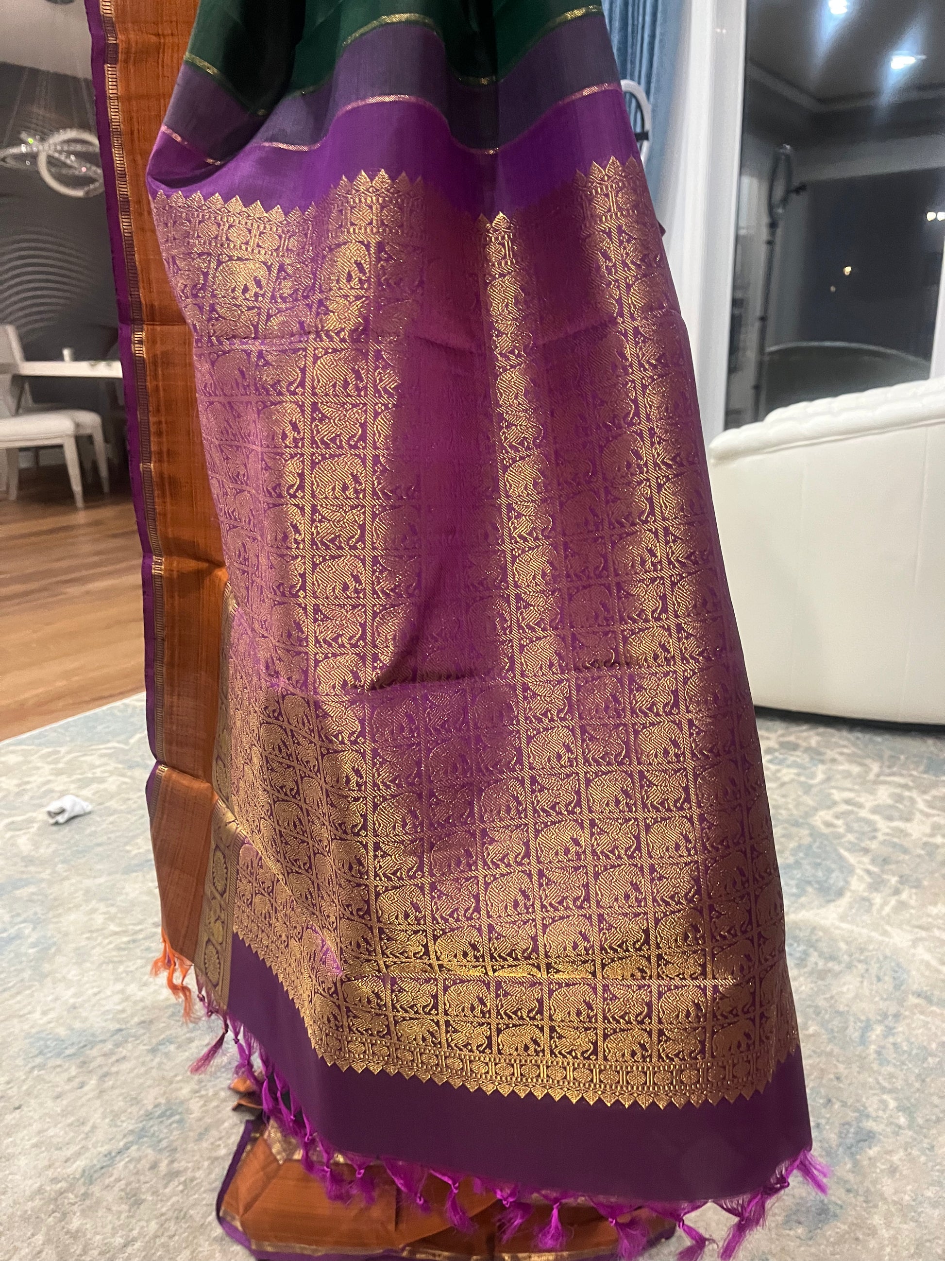 Sumedha (ಸुमೇಧಾ) – Dark Green & Wine Purple Korvai Kanjeevaram Pure Silk Saree